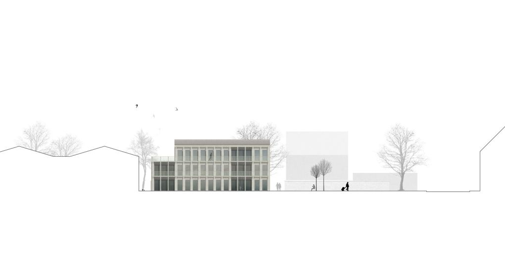 Die von Baur & Latch vorgeschlagene Bebauung entlang der bestehenden Brandwände ergänzt das Quartier in adäquater Weise. Die Maßstäblichkeit und Bauhöhe der bestehenden umgebenden Bebauung werden aufgenommen und ergänzt.