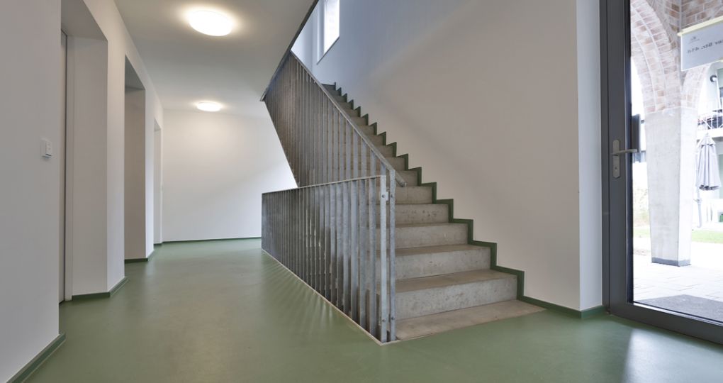 Unter dem gesamten Komplex wird eine Tiefgarage mit mit insgesamt 51 Stellplätzen sowie den notwendigen Funktionsflächen errichtet. Aufgrund der beengten Verhältnisse wird die Maßnahme in 3 Bauabschnitten realisiert.