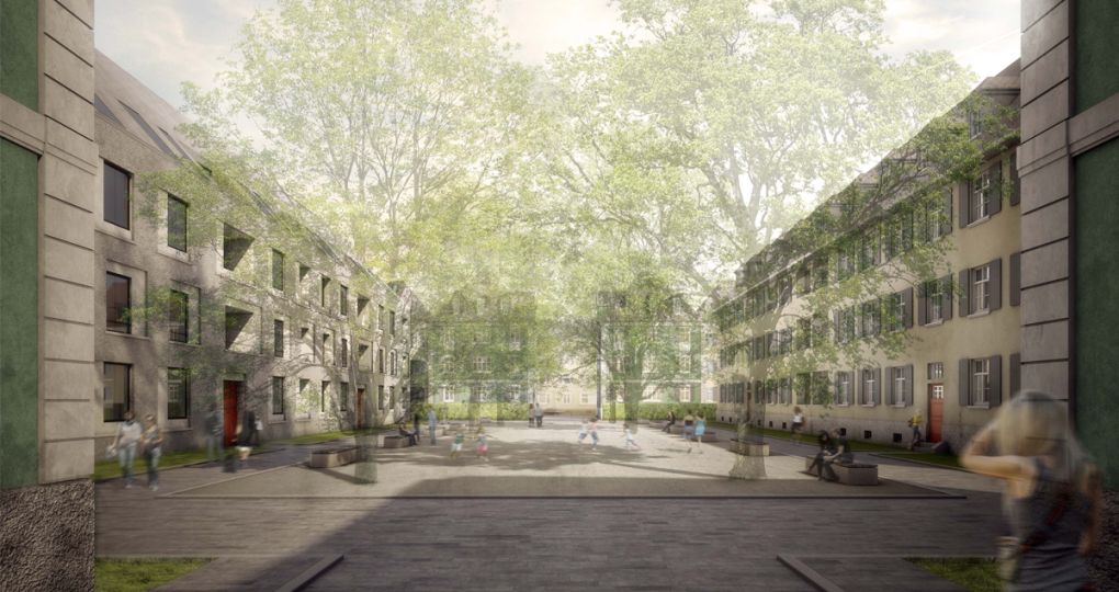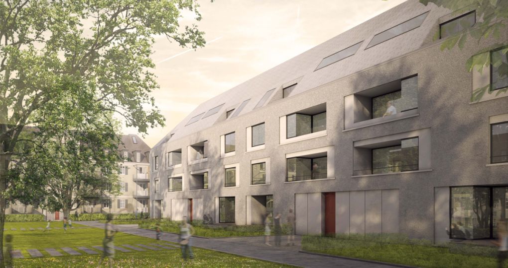 Auf dem prominenten Grundstück im Herzen der neobarocken „Fichtesiedlung“ (heute „Hohenzollernhöfe“) aus den 20er Jahren des vergangenen Jahrhunderts soll ein neues Wohnhaus realisiert werden. Der lang gestreckte, dreigeschossige Baukörper führt städtebaulich die spiegelsymmetrische Figur des Ensembles fort. Wie sein Gegenüber stellt er sich als ruhiger Baukörper ohne Vor- und Rücksprünge innerhalb des vorgegebenen Baufensters dar.